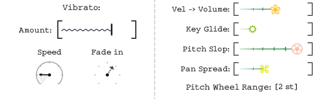 - Cut-Off LFO, Vibrato, Pitch Slop, and polyphonic Glide controls