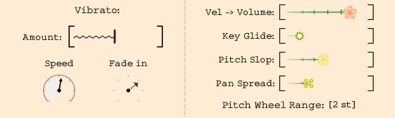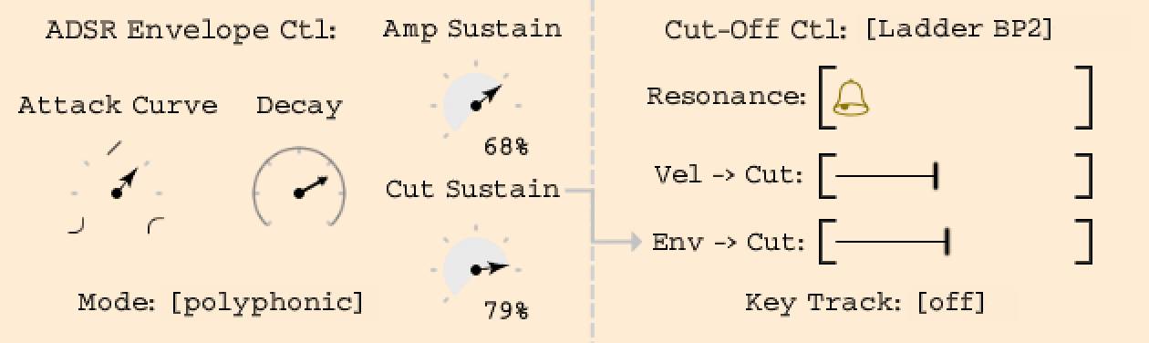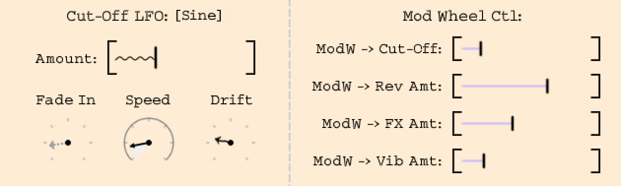 - Cut-Off LFO, Vibrato, Pitch Slop, and polyphonic Glide controls